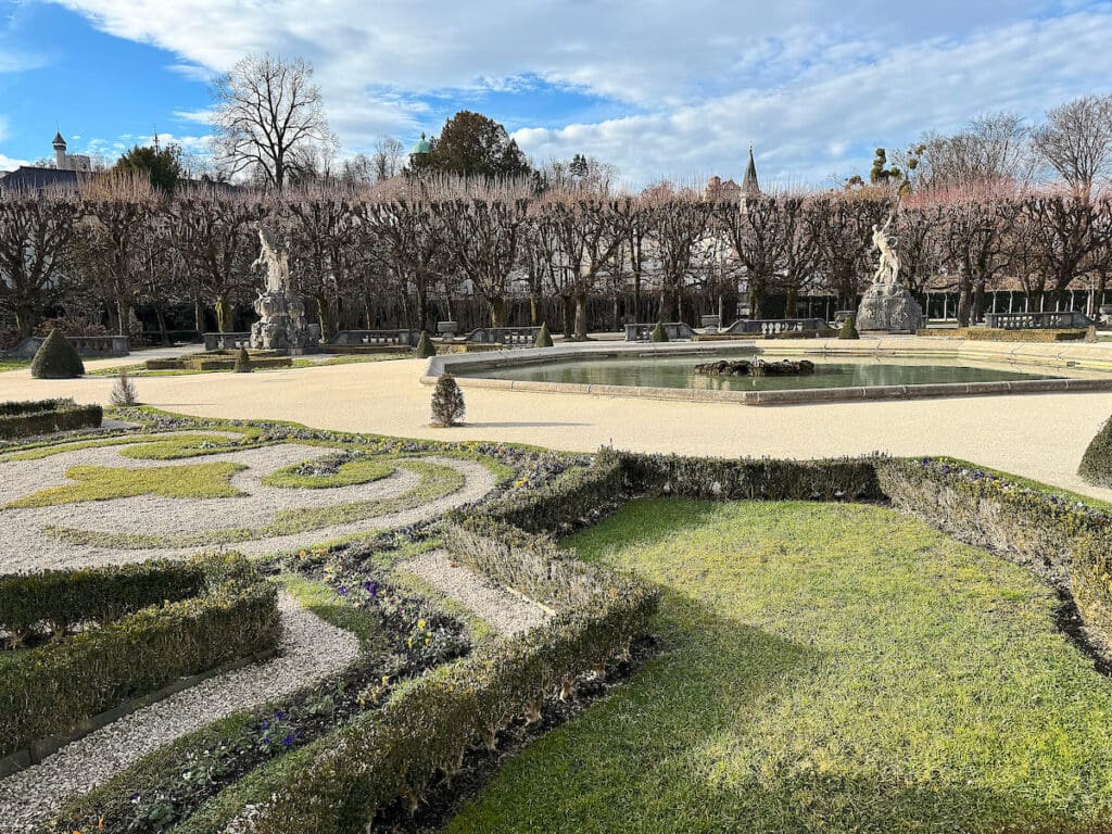 The gardens on site were strategically and geometrically situated and are decorated with mythological statues and beautiful flowers and shrubbery. Behind the Palace in the gardens is a Pegasus fountain. The figure made of copper was forged in 1661. Originally, the fountain sat in many squares around Old Town Salzburg until it was placed at Mirabell in 1913.