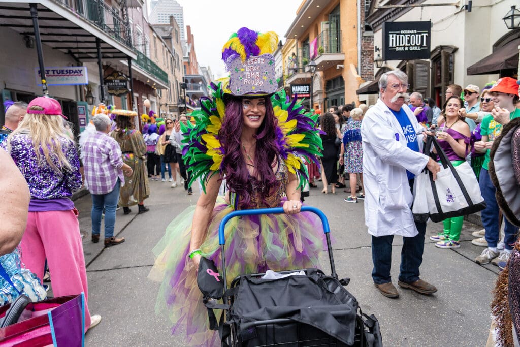 Unlike traditional float parades, Bosom Buddies takes to the streets on foot, weaving through the narrow, historic lanes of the French Quarter. That up-close format is part of the magic. Spectators don’t just watch this parade—they become part of it, laughing, cheering, and hoping to score one of the krewe’s most coveted throws: hand-decorated bras. Each bra is uniquely designed, often outrageous, and always crafted with love, glitter, and a wink.