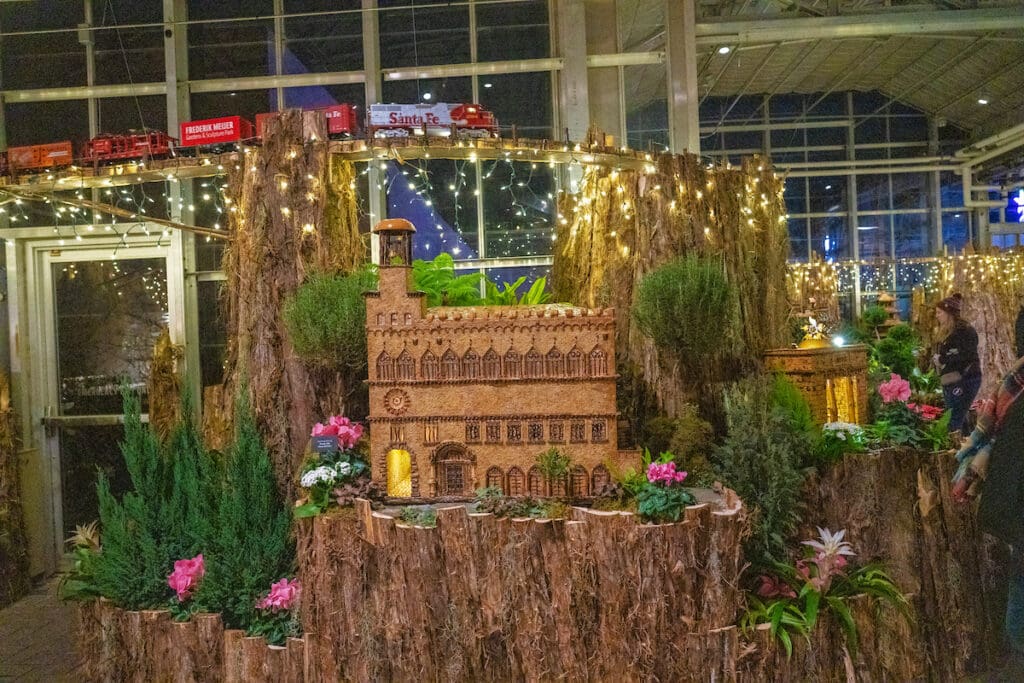 ENLIGHTEN doesn’t end outside. After completing the light walk, guests can warm up and enter the indoor spaces at Meijer Gardens, where the annual Christmas & Holiday Traditions exhibition is also open. Inside, the conservatories and greenhouses are decked in poinsettias and evergreens, and the beloved Railway Garden returns — with miniature trains, festive displays, and over 40 culturally themed holiday trees. It’s a warm, botanical complement to the outdoor show.