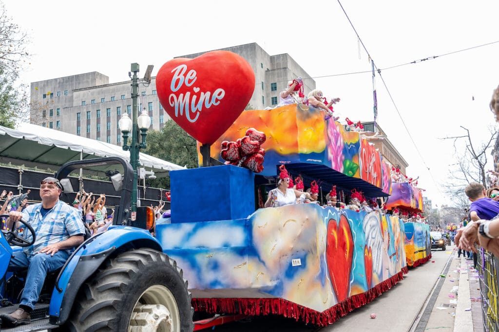 Founded in 1917, the Krewe of Iris has more than a century of history behind it—and that legacy was on full display as the parade rolled at 11:00 a.m. on the Saturday before Mardi Gras. With more than 3,700 members and 35-plus tandem floats, Iris isn’t just large in size; it’s expansive in spirit. This is a parade that feels celebratory and communal, designed to be enjoyed by families, longtime locals, and visitors who want to experience Mardi Gras at its most welcoming.