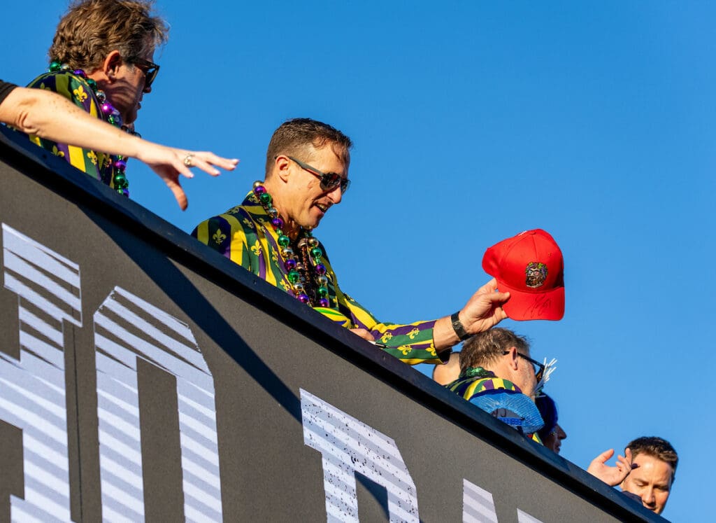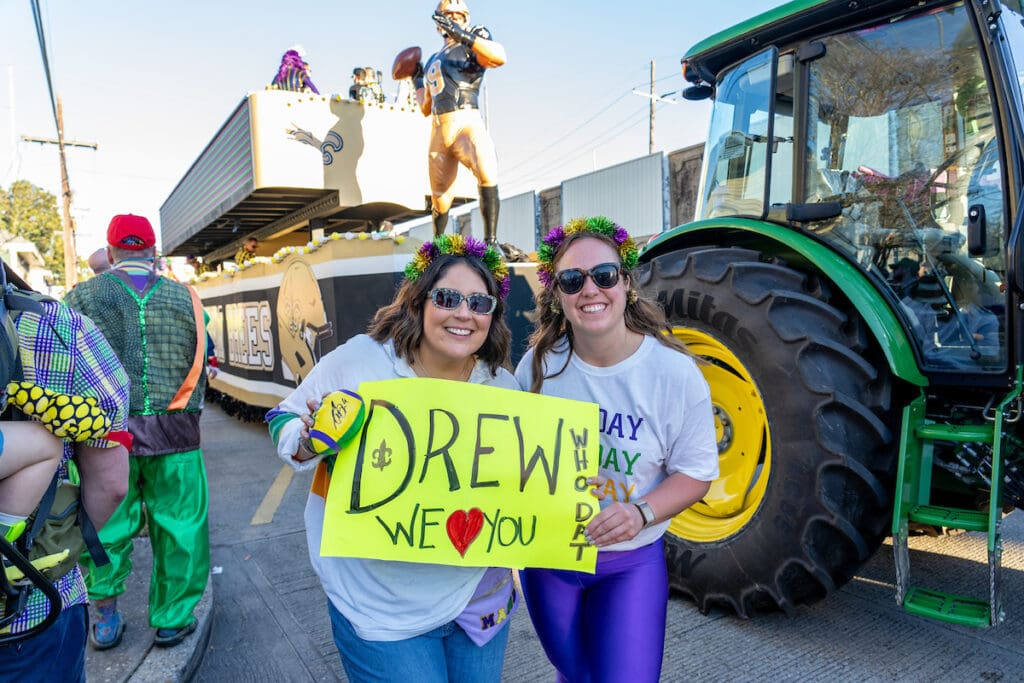 One of the most buzzed-about moments of the night was a beloved local legend joining the celebration. Drew Brees — who led the New Orleans Saints to their only Super Bowl title in 2010 and spent 13 seasons as the face of the franchise — rode in a specially designed Bacchus float in honor of his recent induction into the Pro Football Hall of Fame.