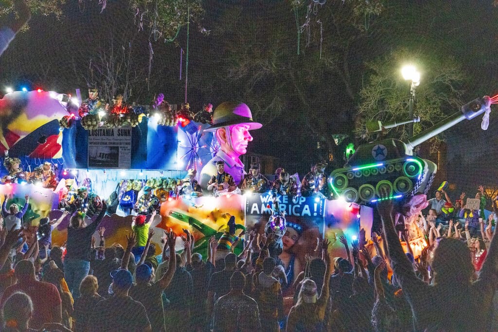 Float designers drew from some of the most iconic chapters of American history, including the glittering excess of The Roaring ’20s, the sacrifice and courage of both World War I and World War II, the trailblazing contributions of pioneering women, and the breathtaking beauty of the National Parks. It was a parade that was as educational as it was spectacular — something you don’t often say when beads are flying through the air at your head.
