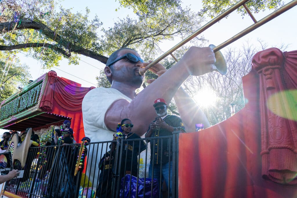 That collaboration marked a turning point. In 2020, Freret introduced what was then the largest float prop in Mardi Gras history—a massive bust of Grand Marshal Troy “Trombone Shorty” Andrews. The same year, the krewe debuted its now-signature “Music of New Orleans” theme, celebrating the city’s rich and diverse musical legacy. Iconic performers like Preservation Hall and Arcade Fire were honored, turning the parade into a moving tribute to the sounds that define the Crescent City.