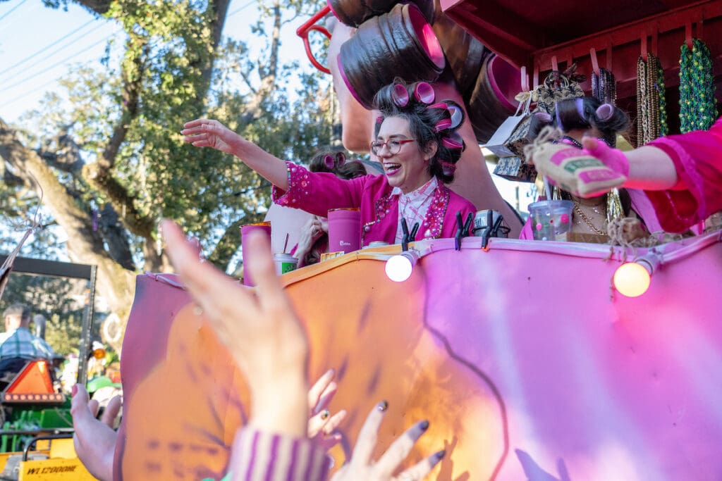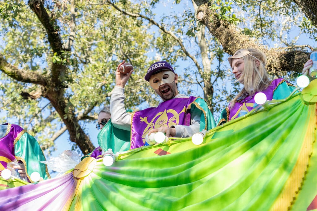 Boyfriend on her float during Krewe of Freret parade during the Mardi Gras in New Orleans Photo Credit: Amy Harris/The Travel Addict