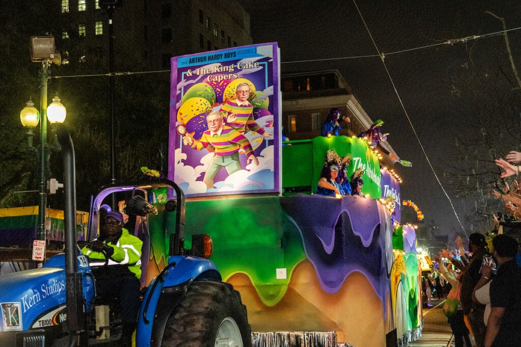Adding a nod to Mardi Gras history itself, an Arthur Hardy float rolled by, honoring the man whose work has chronicled Carnival for decades. It served as a reminder that while Muses thrives on modern commentary, it remains deeply rooted in tradition.