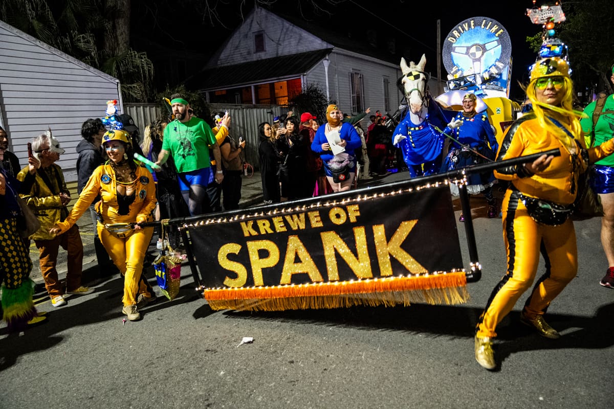 Every subkrewe participating in the irreverent parade presented handcrafted floats drawn by mules, accompanied by the lively tunes of live brass bands. The floats portrayed diverse interpretations of the theme, infused with ample doses of political and social commentary, as well as clever and provocative humor.