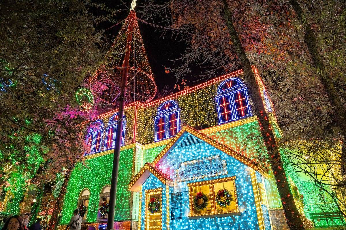 Tucked away in the Ozark mountains in Branson, Missouri is the award winning 61-acre amusement park Silver Dollar City. They officially opened their 2024 Old Time Christmas season on Saturday, November 2. In the past, the season ended on December 31, but this year they have extended the season until January 4. The festival features over 6.5 million lights, one thousand decorated trees, two musical productions, classic amusement rides, holiday shopping, and tasty holiday food favorites.