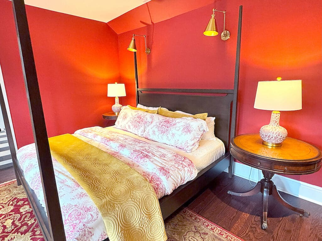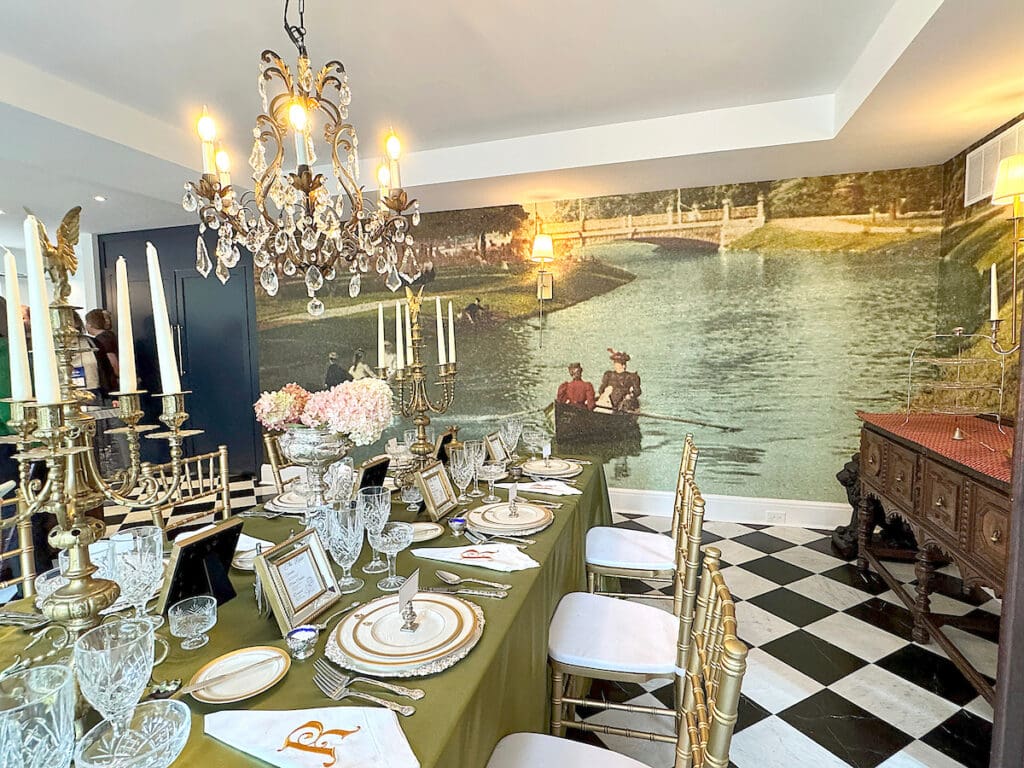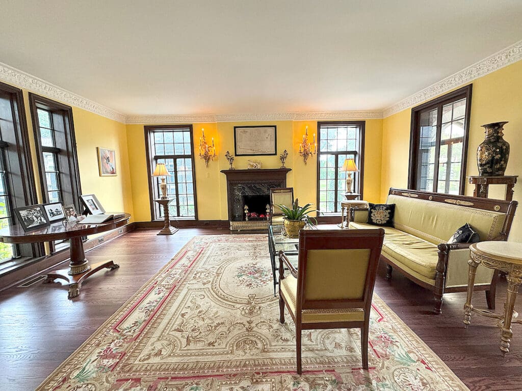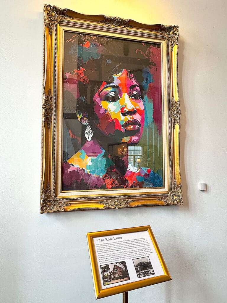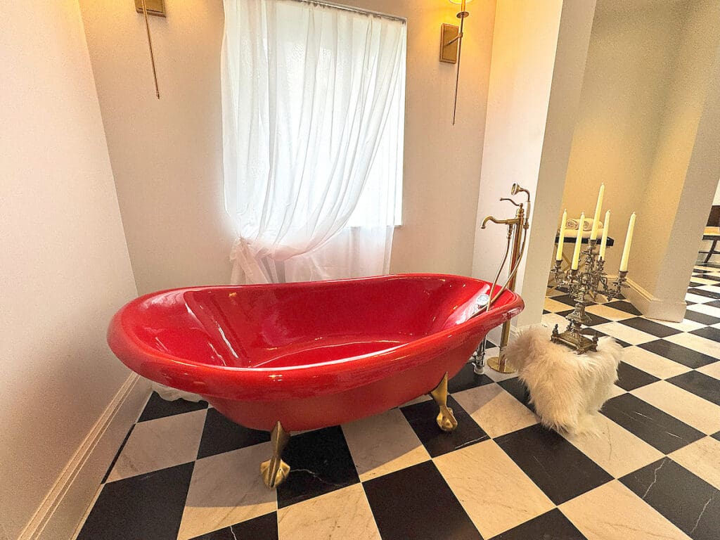 Franklin held many parties and events at the Estate. She kept many of the home’s features the same, adding a few of her own personal touches like changing the primary bedroom into a dressing room with a tub and fireplace. She was also the one to give the home its Rose Estate name, working with interior designer Barbara Kopitz to add decorative rose embellishments into the home. One of the most famous design choices is the custom rose-red Kohler soaking tub.