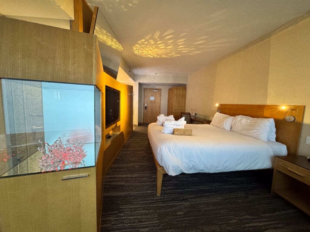 My room featured a spacious layout with warm wood accents, calming neutral tones, and one standout feature: a spa bath positioned to overlook the mountain views. Soaking in the tub as clouds drifted past the windows was easily one of the most memorable moments of the stay. It’s a small but meaningful detail that reinforces the resort’s focus on wellness and intentional living.