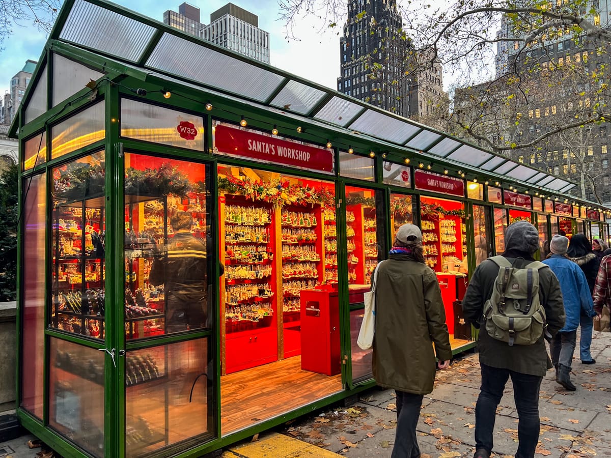 One of the most beloved traditions at Bryant Park is the 17,000 square foot ice skating rink that is free to use if you bring your own skates. The rink is setup with beautiful views of the entire part right in front of the giant Christmas tree adorned with colorful ornaments.