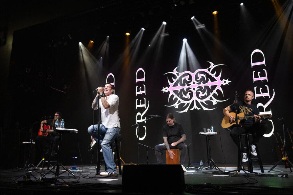 The evening shifted into a more intimate gear with a very special acoustic set from Creed, reserved for early-booking passengers. Stripped of the arena production, the band leaned into storytelling, walking fans through the origins of songs like “My Own Prison” and “Arms Wide Open.” Hearing how a payphone call sparked a career-defining track, or how personal milestones shaped their songwriting, added a deeper layer to music fans thought they already knew.