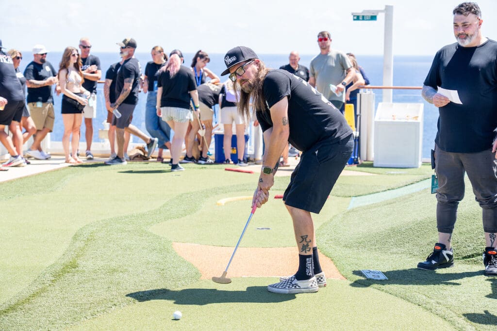 The morning kicked off with one of the cruise’s biggest perks: access. Autograph sessions filled the early hours, giving fans the chance to meet the artists behind the soundtrack of their lives. Every band except for Creed participated in these sessions throughout the day. Meanwhile, a handful of lucky passengers teed off on Deck 19 for a mini golf session with members of Creed—a surreal, laid-back way to start the day that felt more like hanging out than a formal meet-and-greet.