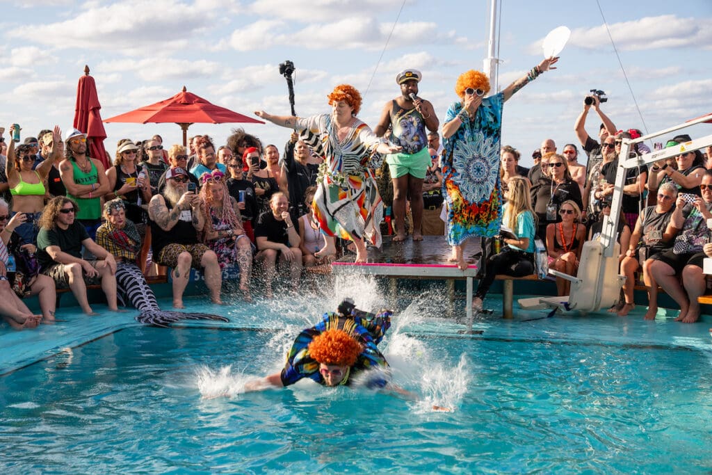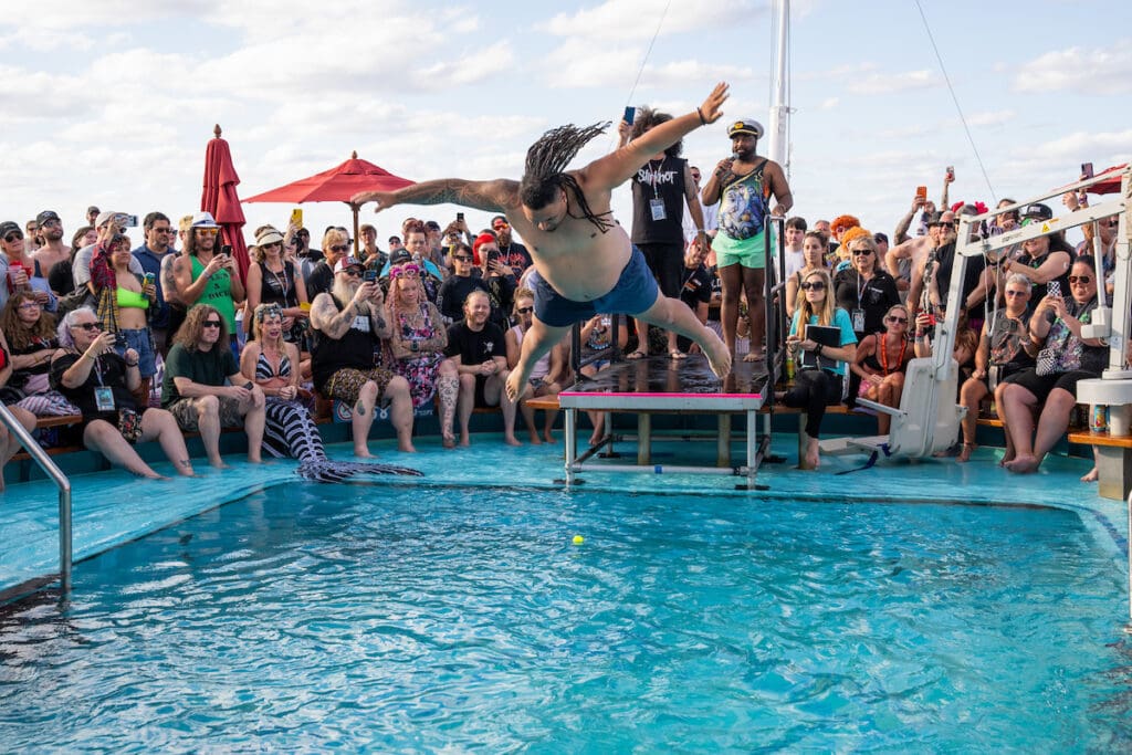 Chaos and laughter collided during the ShipRocked belly flop contest, hilariously hosted by the one and only Cookie. With a hype-man energy that only he can deliver, Cookie encouraged ShipRockers to abandon all fear and launch themselves into the pool with maximum commitment and minimal concern for style. Contestants went all-in—arms flailing, costumes flying, and water exploding everywhere—while the crowd cheered like it was a main-stage headliner. It was loud, ridiculous, and painfully entertaining in the best possible way, perfectly capturing ShipRocked’s spirit of unfiltered fun and community absurdity.