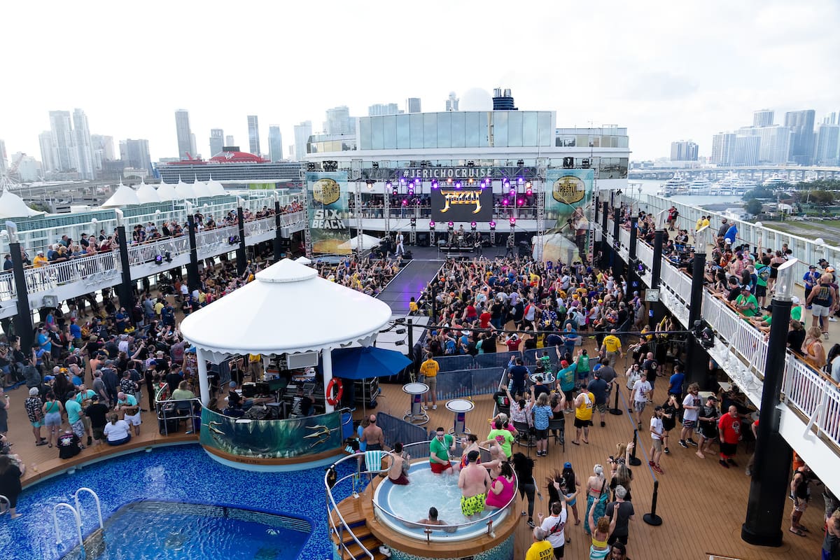 Fans were greeted as they boarded the ship by comedian and actor Brad Williams and professional wrestler Nic Nemeth for a sail away shot. Fozzy, a heavy metal band fronted by vocalist Chris Jericho took to the stage. The band’s current lineup consists of guitarist Rich “The Duke” Ward, guitarist Billy Grey, bassist P. J. Farley, and drummer Grant Brooks.