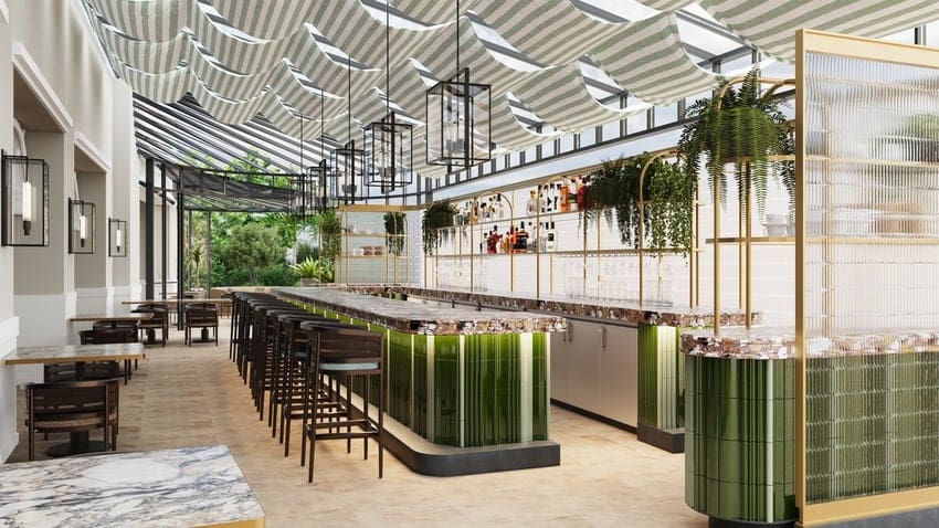 The restaurant features a 106-seat dining room, a spacious 130-seat outdoor terrace overlooking the resort, two beautiful bars, and even a private dining room for more intimate celebrations.