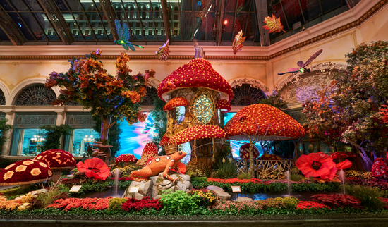 Bellagio’s Conservatory & Botanical Gardens has opened “Autumn Majesty: A Glamorous Harvest”, designed by Ed Libby. With the help of the Bellagio’s Horticulture team, Libby has transformed the Conservatory into an immersive autumn-hued traipse through the season, as depicted by five unique scenes. The displays feature 700,000 autumn leaves, 31,000 fresh cut carnations fashioned into mushroom topiaries, a massive pumpkin weighing over 660 pounds and more. “Autumn Majesty: A Glamorous Harvest” is on display now through November 8th.