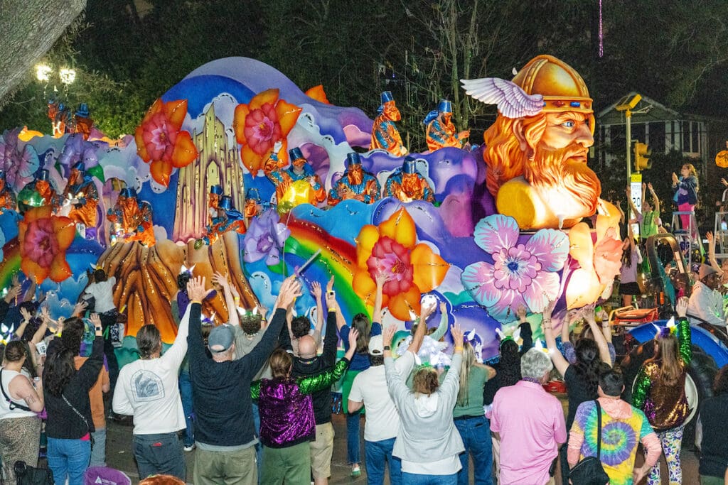 Founded in 1937, Hermes holds the distinction of parading longer than any other night-parading krewe in New Orleans. Each year, the krewe takes to the streets at 5:30 p.m. on the Friday before Fat Tuesday, and that sense of ritual is woven deeply into its identity. For 2026, Hermes invited revelers on a journey to “Fabled Lands of Myth and Legend,” a theme that existed entirely within the worlds of fictional literature and imagination. From the first float to the last, the parade unfolded like a storybook brought to life.